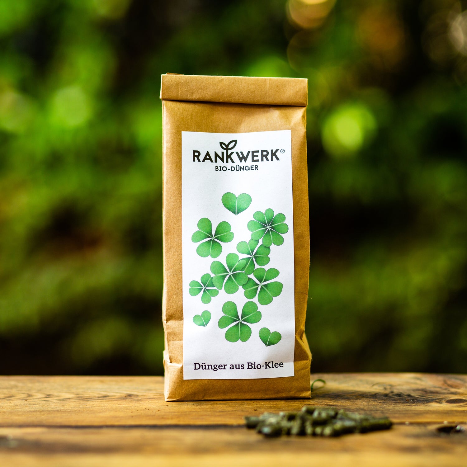 Neben genügend Wasser und Sonnenlicht braucht deine Pflanze Nährstoffe. Unser Bio-Dünger besteht aus 100% ökologisch erzeugtem Klee und ist frei von tierischen Produkten (vegan). Das grüne Glücksblatt hat eine besondere Eigenschaft: Durch die Sonnenenergie und Knöllchenbakterien in seinen Wurzeln speichert Klee Stickstoff aus der Luft. Bio-Landwirte nutzen diese Fähigkeit und bringen Klee in ihre Fruchtfolge ein. In Pellet-Form eignet sich der Bio-Klee ideal für die Anwendung im Haus- und Kleingarten sowie auf deinem Balkon. Frei von Kleesamen.