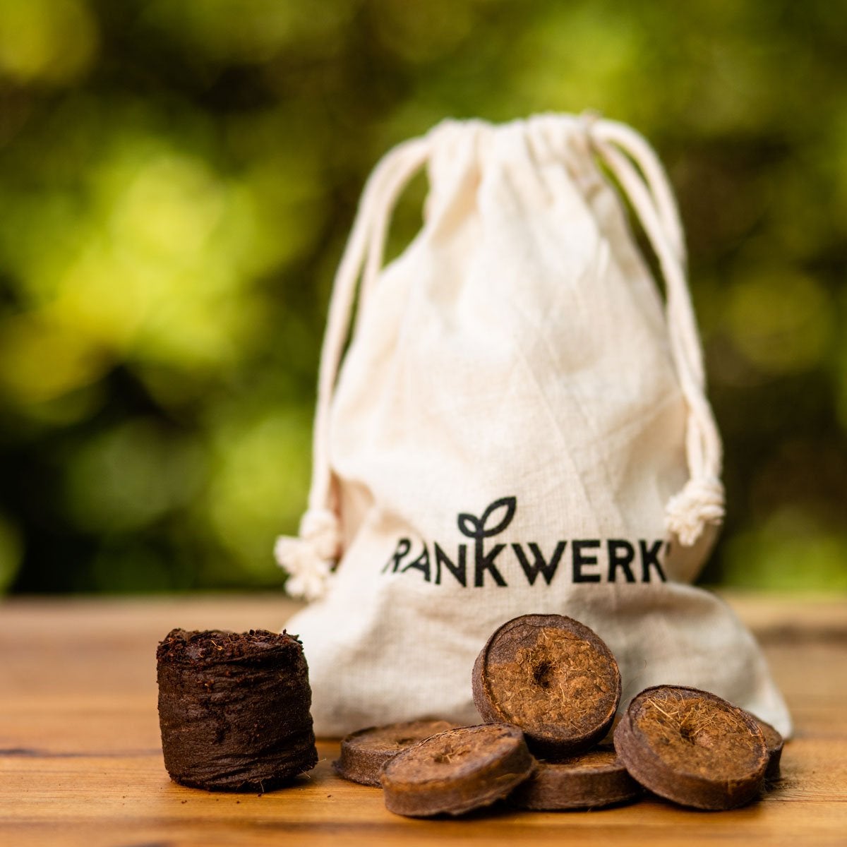 Mit dieser Box bist du für die ganze Gartensaison gewappnet. Wie du welche Sorte anbaust und pflegst erfährst du im Anleitungsbuch. Die Kokosquelltabletten helfen bei der Anzucht der Pflanzen, indem sie Nährstoffe für die erste Wachstumsphase der Saatkörner liefern. Der Bio-Klee-Dünger sorgt dann für den Nährstoffbedarf zwischendurch.
